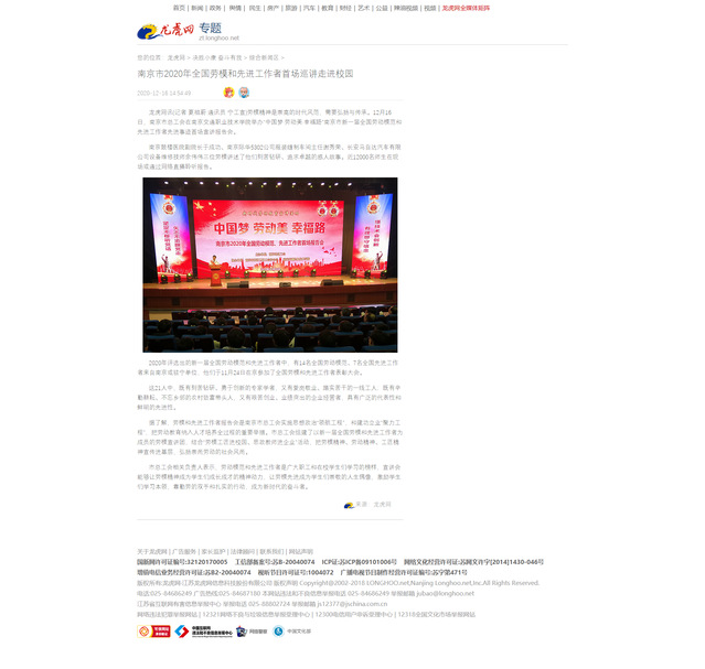 【龙虎网】南京市2020年全国劳模和先进工作者首场巡讲走进南京交院