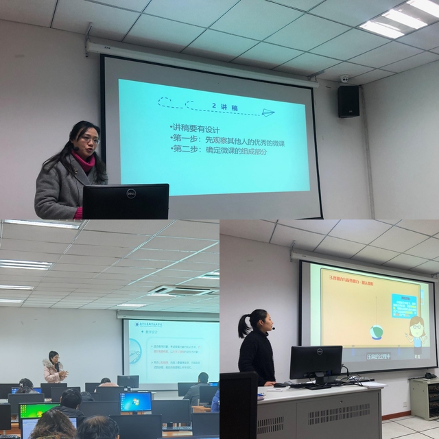 教学示范课上,周鑫老师从主题、内容、结构、艺术风格等方面阐述微课设计思路;张云老师从微课选题、教学设计、教学实施、教学效果分享了制作微课的心得;易星老师从“如何制作一个优秀微课?”讲解了微课的制作过程。三位优秀教师分别展示了自己的微课作品。本次示范课活动,促进了教师间的学习交流,尤其对青年教师的教学能力提高方面发挥着重要作用,同时也有助于推动课堂教学改革,为专业课程建设奠定坚实的师资队伍基础。