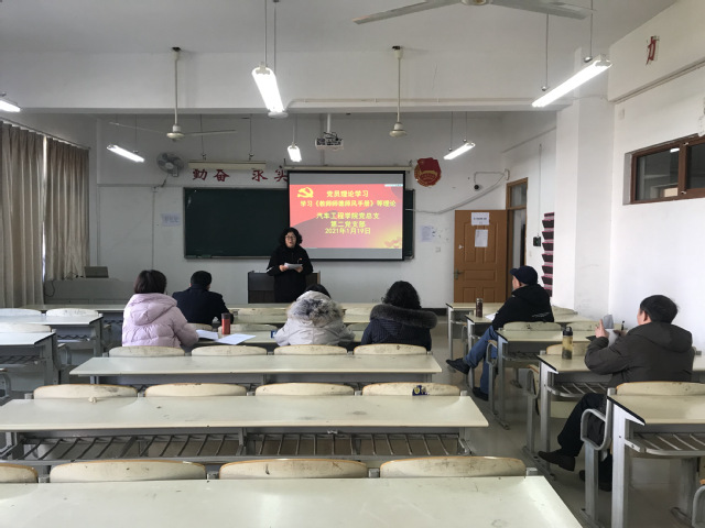 在中心组学习、全院教师学习会的基础上,进一步在党员中开展师德师风学习教育活动,旨在进一步深刻领会习近平总书记关于师德师风建设的重要讲话精神,深化师德师风学习教育活动,动员全体党员教师在争做“四有好教师”方面做好示范带头作用。