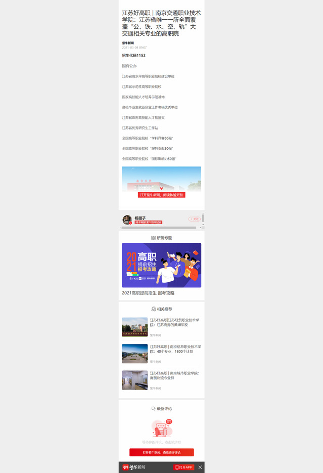 【紫牛新闻】江苏好高职 | 南京交通职业技术学院:江苏省唯一一所全面覆盖“公、铁、水、空、轨”大交通相关专业的高职院