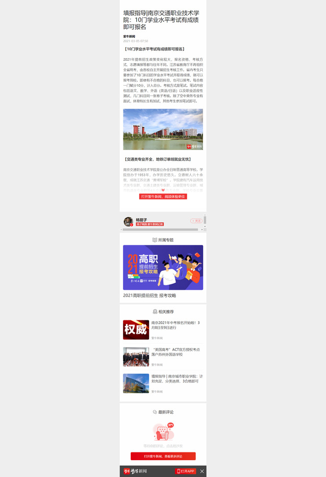 【紫牛新闻】填报指导|南京交通职业技术学院:10门学业水平考试有成绩即可报名