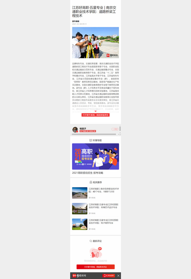 【紫牛新闻】江苏好高职·五星专业 | 南京交通职业技术学院:道路桥梁工程技术