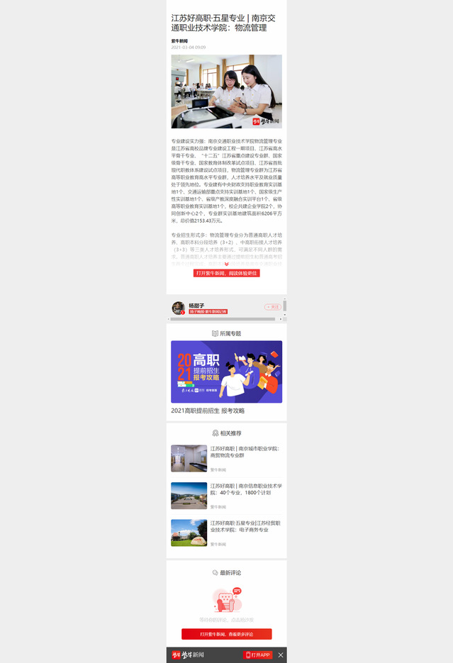 【紫牛新闻】江苏好高职·五星专业 | 南京交通职业技术学院:物流管理
