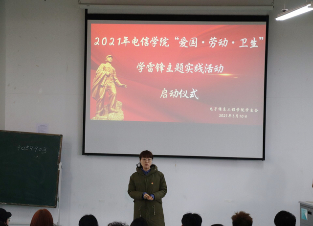 为进一步弘扬传承雷锋精神,践行社会主义核心价值观,电子信息工程学院于3月10日在宏博楼举行“爱国·劳动·卫生”学雷锋主题实践活动启动仪式。学生会指导老师李亚平主持,学生会和信韵星志愿者服务队全体成员参加了启动仪式。