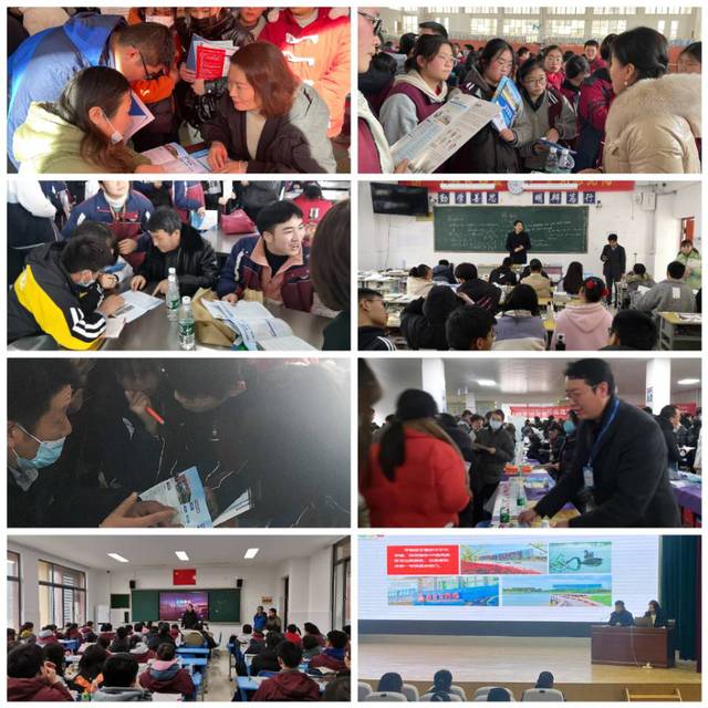 宣传人员通过散发招生简章、集体宣讲、面对面交流等形式为学生答疑解惑,讲解招生政策、学校发展及招生专业、录取办法等,让更多的学生和家长了解我校。