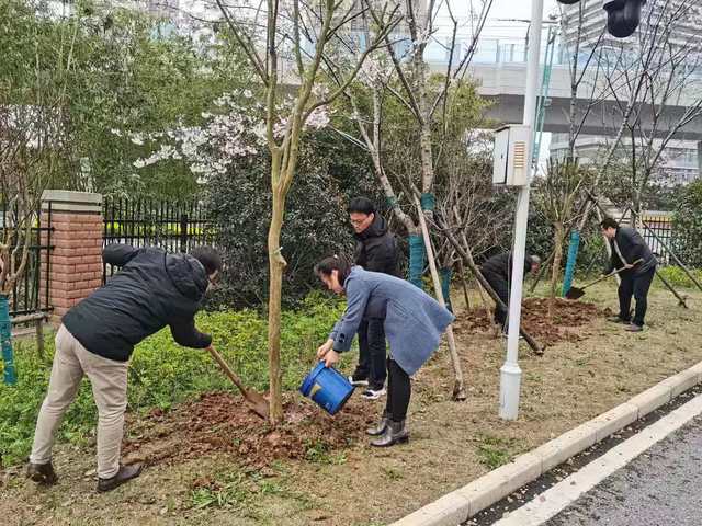 会后,大家前往学校绿化工地参加义务植树活动,为美丽校园添一份绿色。
