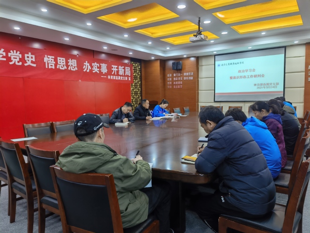 3月24日上午,体育部在等行健馆会议室召开全体党员政治学习会暨意识形态工作研判会。体育部全体党员、各教研室主任共同参会,会议由直属党支部书记史立峰主持。