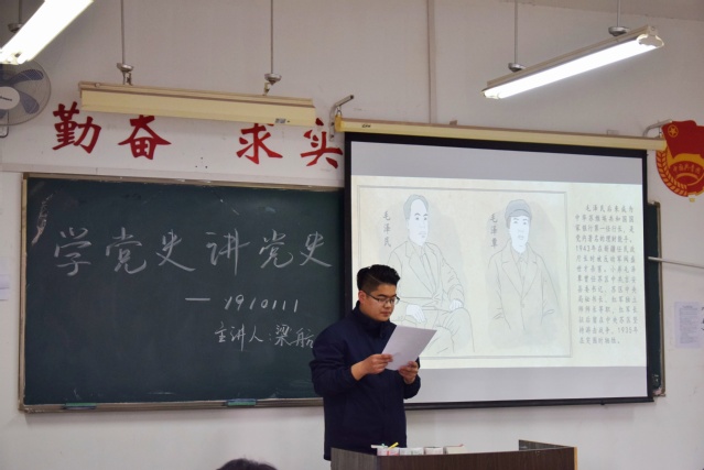 3月24日下午,汽车工程学院团学干部“学党史、讲党史”主题活动在弘毅楼416继续举办。学生干部、入党积极分子1910111 班梁航同学和1910112 班许雯同学分别以《青年毛泽东》、《历经艰险、参加七大》为题,向1910111班全体同学进行了宣讲。