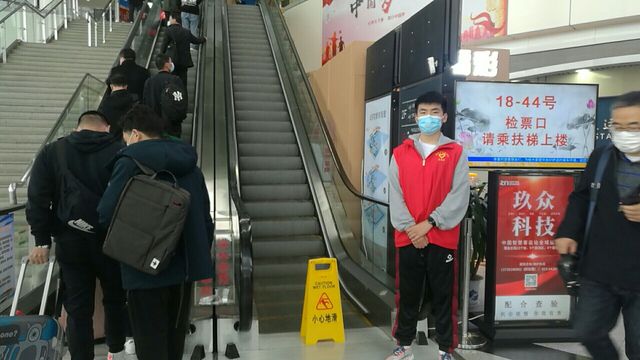 经过简短的培训和分组,同学们清楚地了解到各自岗位的任务后,便迅速投入工作,有的负责健康码登记,有的负责关键点指引旅客流向,有的负责旅客乘车引导,有的负责买票指导。期间,他们尽心尽责帮助那些有困难有需要的乘客,为返乡的旅客们送去一份关爱,送去一份温暖。