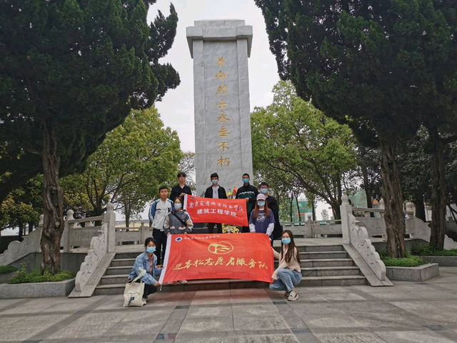 4月11日,建筑工程学院迎客松志愿者服务队前往龙都烈士陵园,开展党史学习教育实践活动,大家通过实地参观烈士陵园,了解江宁红色革命历史,进一步坚定理想信念,用无私奉献的志愿服务献礼建党100周年。