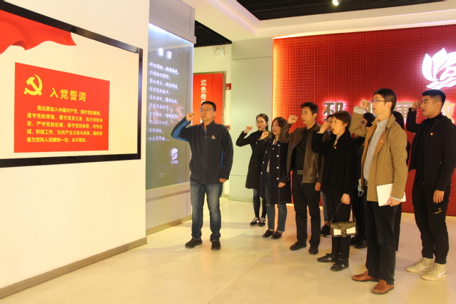 天清气朗,宛若大家的纯洁信仰,个个坚定;赤日炎炎,犹如大家的炽热红心,颗颗向党。16日下午,党员同志们满怀庄严敬畏之情抵达徐州后,便立刻驱车前往位于邳州市的王杰烈士纪念馆,学习王杰同志“一心为革命”的崇高理想信念,“两不怕”的宝贵战斗精神以及“三不伸手”的高尚道德情操。在纪念馆一楼的廉政教育馆内,由支部书记周昊明同志领誓,全体党员同志重温了入党誓词并接受了廉政教育洗礼。
