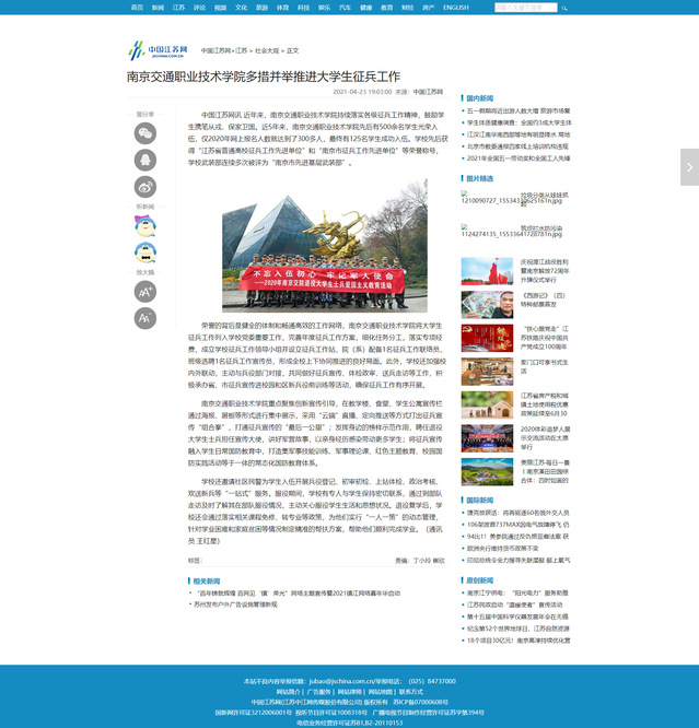 【中国江苏网】南京交通职业技术学院多措并举推进大学生征兵工作