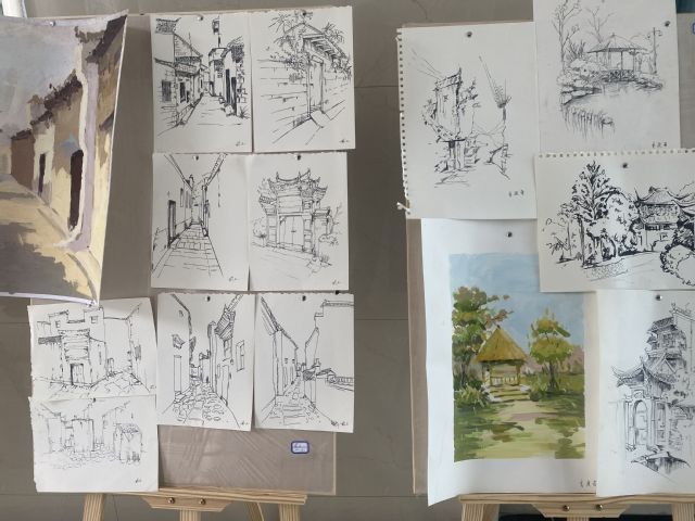 此次展览是人文艺术系2020级艺术专业138名同学赴皖南写生一周(4月18日—23日)成果的展示。展览作品包括色彩和速写两个部分的内容。作品鲜明的体现了学生在写生过程中收集的素材和感受,艺术表现手法与风格丰富多样,既体现了学生的原有的绘画表现基础,也反映了同学们通过设计基础教学学会在生活中发现与创造的能力与水平。一幅幅作品是他们想象力、审美力、创造力的体现!