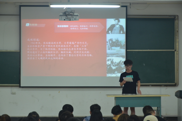 最后,35期党校优秀学员张阳同学带领大家围绕“学习先进优秀党员干部的精神”的主题进行了党史学习,重点学习了焦裕禄、龚全珍、黄大发等党员干部的先进事迹,号召同学们向前辈学习,培养艰苦奋斗、迎难而上、无私奉献等精神,发挥自己的聪明才智,不断创新,甘愿出大力、流大汗,努力成为具有远大理想的一代、品德高尚的一代、勤奋学习的一代。