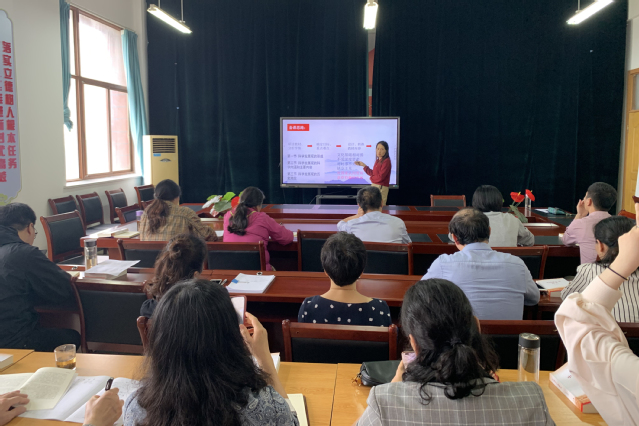 徐老师首先就研读教材、分析学情、确定目标和重难点、设计转换教材内容、选择教学方法等方面给大家展示了将教材体系向教学体系转换的一些思考和做法。随后,她结合自己制作的《以人为本:科学发展观》授课课件给大家做了一堂精彩的示范说课。徐老师较好的说课设计、清晰的说课思路、层次分明的问题设计、深入浅出的讲解探讨给大家留下了极为深刻的印象。