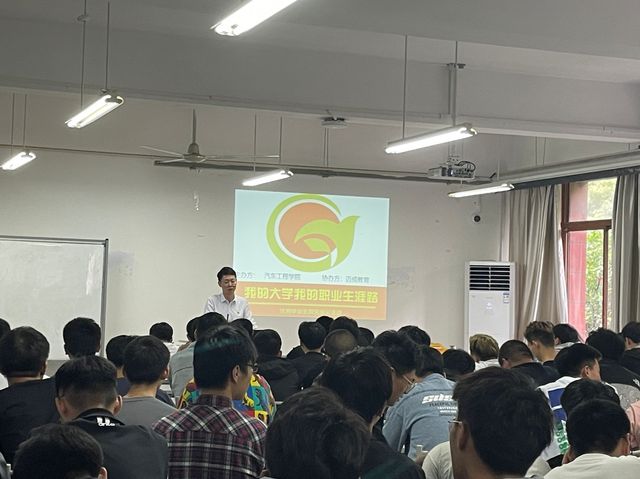 5月11日下午,汽车工程学院在致远楼209组织2021届优秀毕业生代表迟文俊、王家旺、文谦艺三名同学为在校生分享实习经历,一百余名在校生参加了分享会。