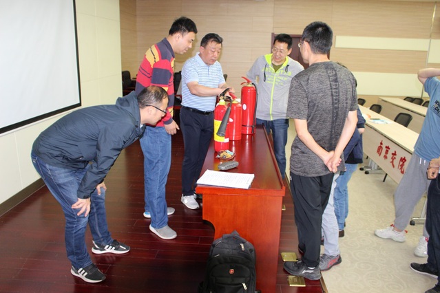 在保卫处的大力支持下,学院消防维保单位专业人员对全体教职工进行了消防培训并指导图书馆和信息办骨干义务消防员进行了简单的消防演练。