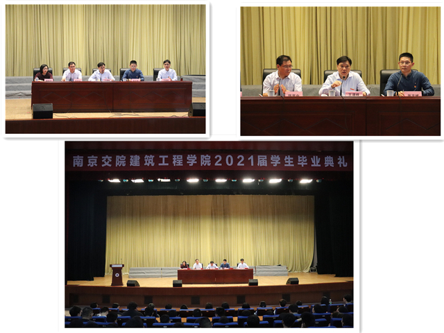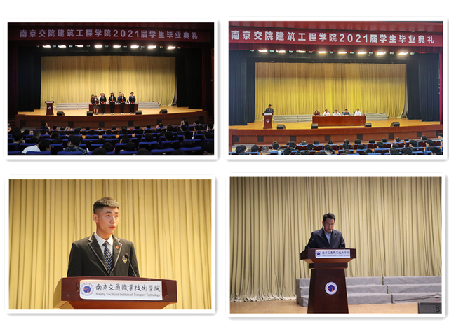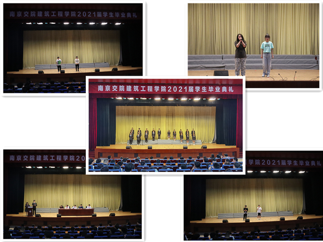 典礼在庄严的国歌声和2018级学生三年精彩瞬间的视频剪辑中拉开了序幕。首先,建筑工程学院党总支陈晋中书记宣读了《建筑工程学院2021届优秀毕业生表彰决定》,主席台各领导为受表彰的优秀毕业生颁发荣誉证书。接着,建筑工程学院教师代表彭国老师致辞,向即将毕业的同学们给予衷心的祝福,并从做人、做事、做学问三个方面教导同学们:不忘初心,真心做人;脚踏实地,良心做事;科学发展,恒心学习。随后,毕业生代表装饰181班的马洪天同学进行发言,他深切怀念三年来学院生活的点点滴滴,并对父母的支持、学院老师的指导栽培和同学们的鼓励帮助表达了真切的感谢。之后,在校生代表们带来了一首饱含深情的朗诵《你好,青春》,为即将毕业的学长学姐们送去诚挚的祝福。