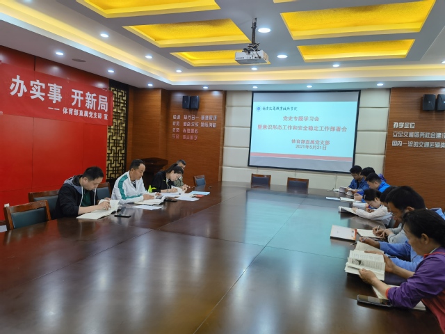 5月21日上午,体育部在行健馆会议室召开党史专题学习会暨体育部意识形态工作和安全稳定工作部署会。体育部全体党员、教师参会,会议由直属党支部书记史立峰主持。