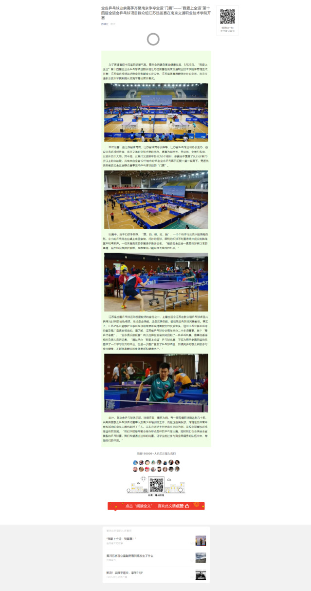 【苏体汇】全省乒乓球业余高手齐聚南京争夺全运“门票”——“我要上全运”第十四届全运会乒乓球项目群众组江苏选拔赛在南京交通职业技术学院开赛
