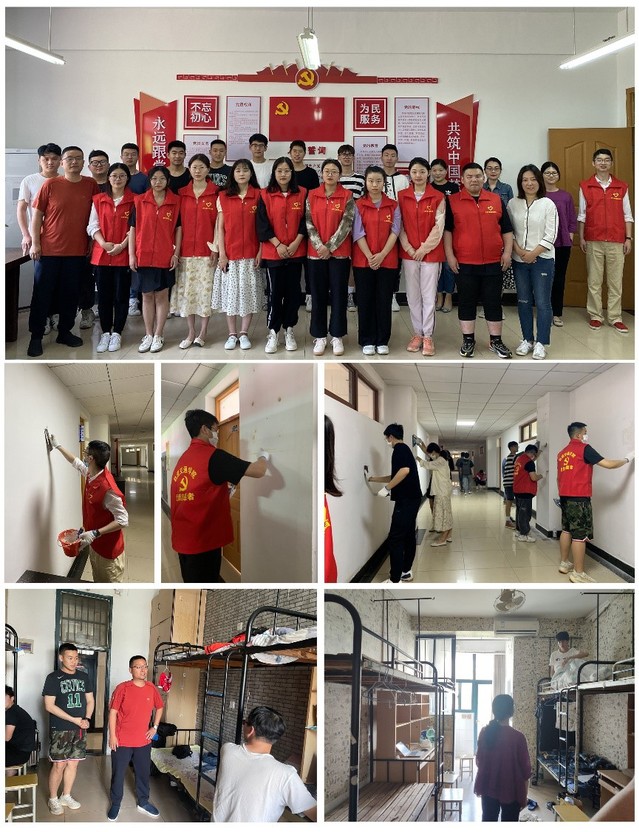 上午,所有党员在明志楼二楼、三楼、四楼集中开展走廊墙壁翻新工作。将走廊两侧留下的员悬挂胶痕铲除、打磨墙壁,补腻子、刮大白,同志们如火如荼地干着活,享受着劳动带来的成就和快乐。下午,第二支部的辅导员老师们来到宿舍区,走访慰问毕业生,与顺利毕业、即将踏出校门的同学们依依惜别。