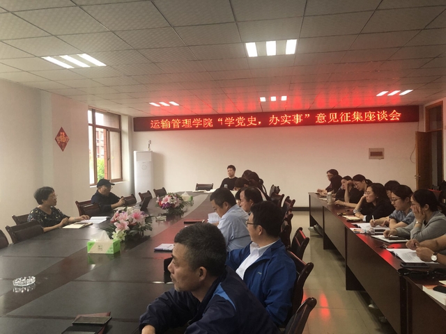 为深入开展党史学习教育工作,积极为师生解决工作、生活上的难题,5月26日下午,运输管理学院党总支在齐贤楼418会议室召开“学党史、解难题、办实事”意见征集座谈会,学院领导班子成员,党员、教师代表等参加了座谈会。