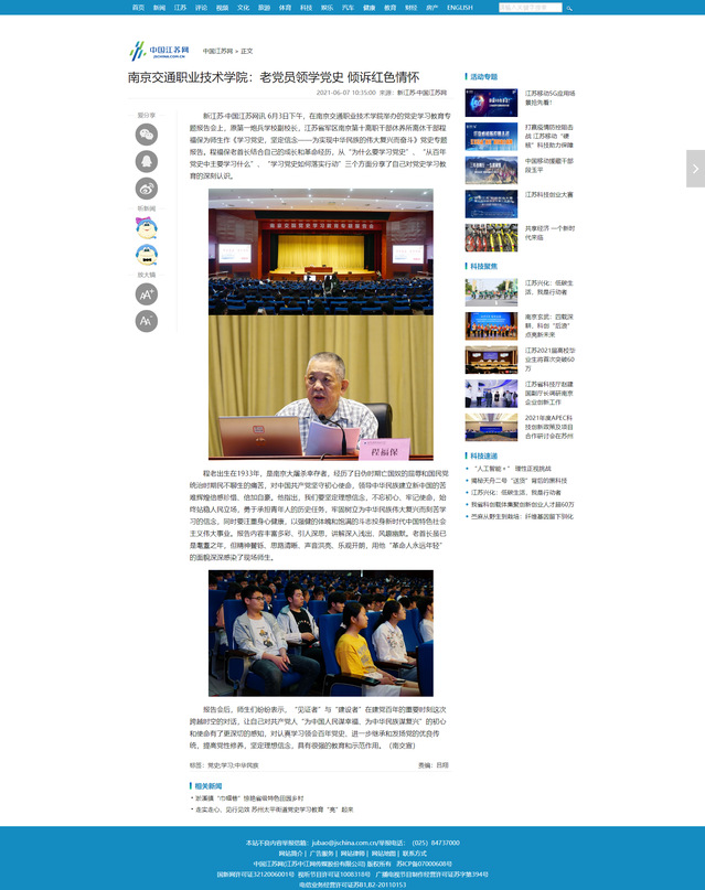 【中国江苏网】南京交通职业技术学院:老党员领学党史 倾诉红色情怀