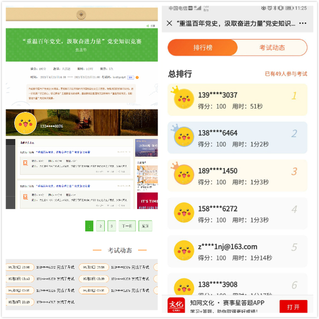 手机扫码,点击答题链接进入答题页面,25道党史竞赛选择题依次映入眼帘……这是最近基础教学部直属党支部策划的一场以“重温百年党史,汲取奋进力量”为主题的党史知识竞赛活动。