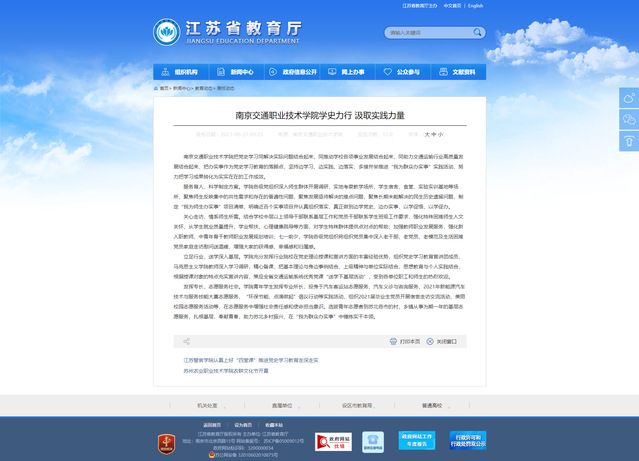 【江苏省教育厅官网】南京交通职业技术学院:学史力行 汲取实践力量