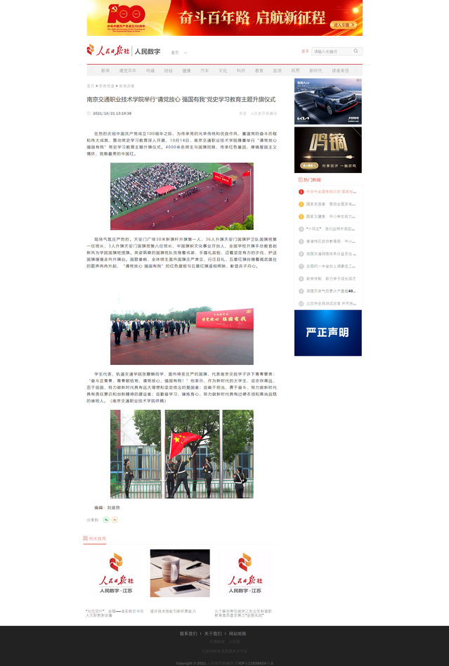 【人民日报·人民数字】南京交通职业技术学院: 举行“请党放心 强国有我”党史学习教育主题升旗仪式