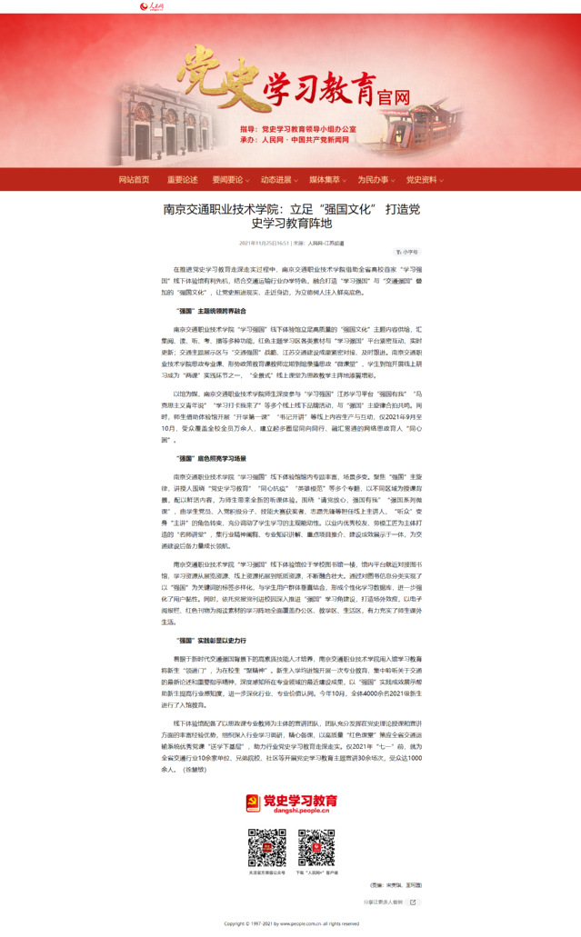 中央【党史学习教育官网】南京交通职业技术学院:立足“强国文化” 打造党史学习教育阵地