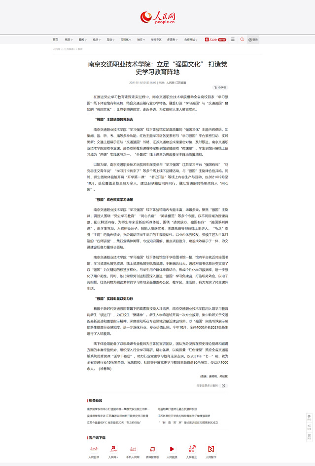 【人民网】南京交通职业技术学院:立足“强国文化” 打造党史学习教育阵地
