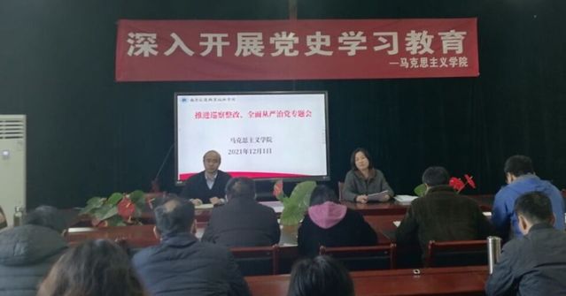 为进一步落实校党委巡察整改工作要求,扎实做好马克思主义学院巡察整改工作,提升马克思主义学院广大党员、教师的法治素养,,切实推进全面从严治党,12月1日下午,马克思主义学院举办了“推进巡察整改、全面从严治党”专题会。