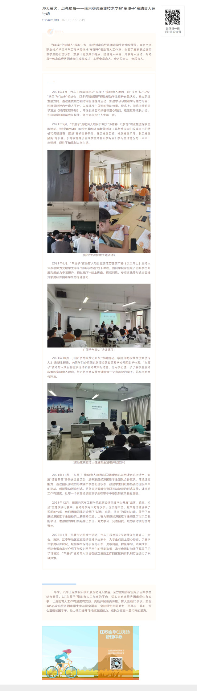 【江苏学生资助】漫天萤火,点亮星海——南京交通职业技术学院“车厘子”资助育人在行动