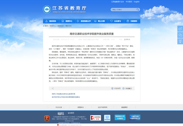 【江苏省教育厅官网】南京交通职业技术学院提升就业服务质量