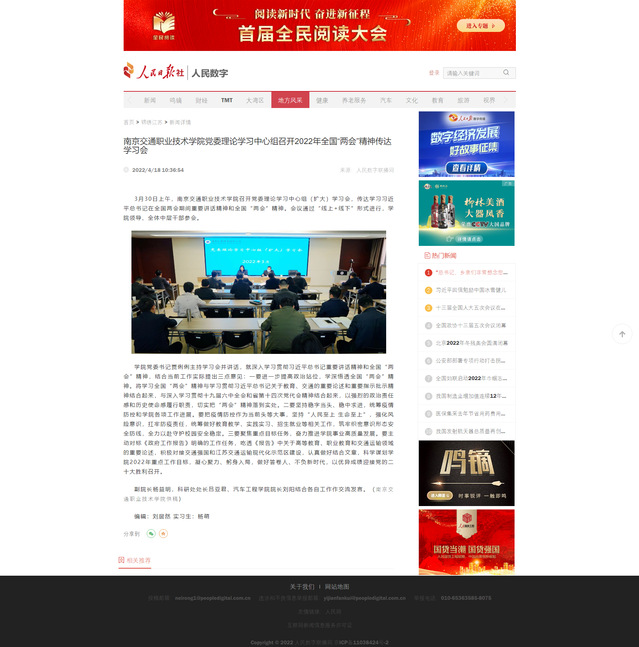 【人民日报·人民数字】南京交通职业技术学院党委理论学习中心组召开2022年全国“两会”精神传达学习会