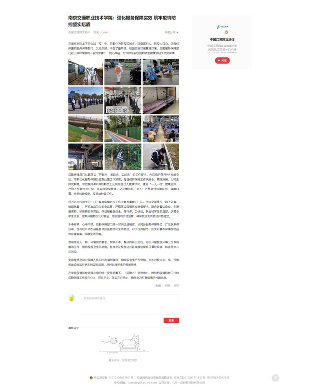 【一点资讯】南京交通职业技术学院:强化服务保障实效 筑牢疫情防控坚实后盾
