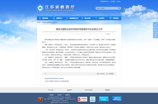 【江苏省教育厅官网】南京交通职业技术学院多举措做好毕业生就业工作