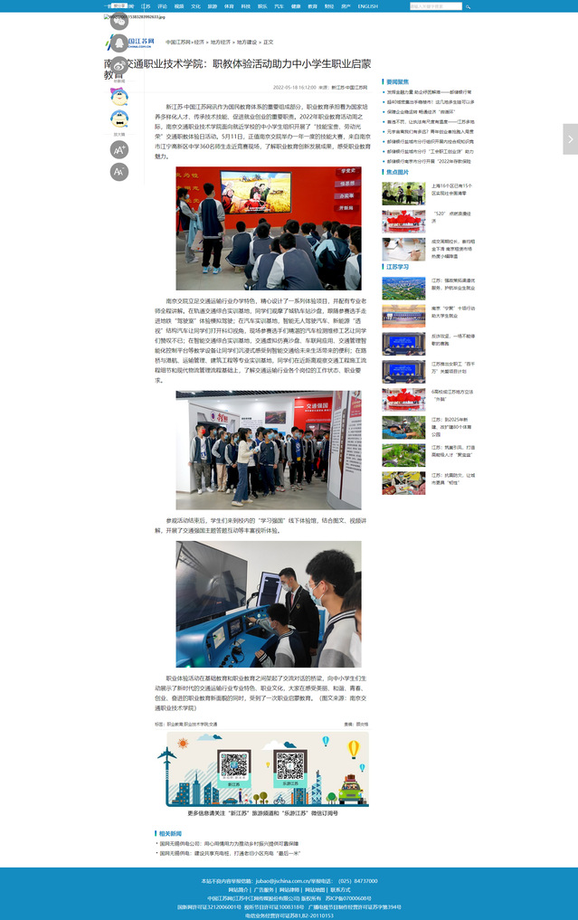 【中国江苏网】南京交通职业技术学院:职教体验活动助力中小学生职业启蒙教育