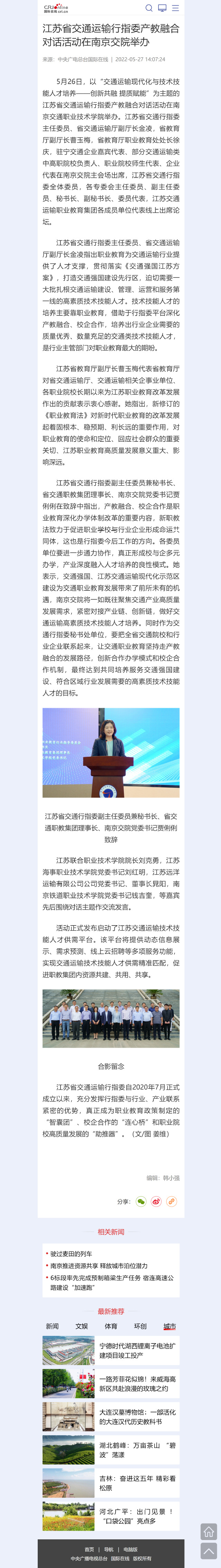 【中央广电总台国际在线】江苏省交通运输行指委产教融合对话活动在南京交院举办