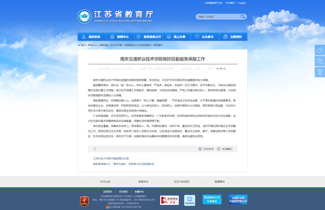 【江苏省教育厅官网】南京交通职业技术学院做好后勤服务保障工作