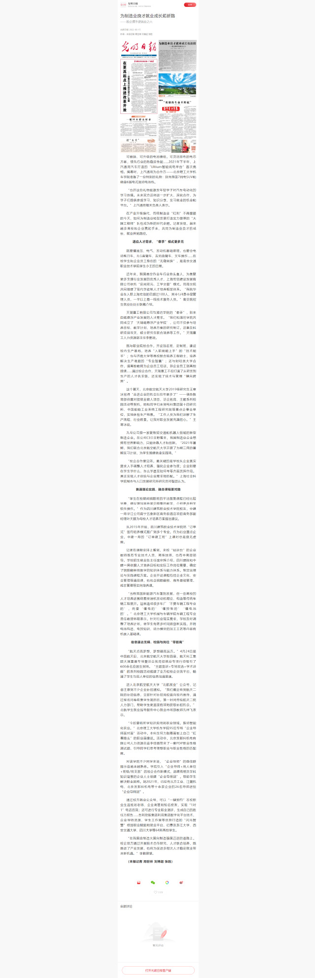【光明日报】为制造业良才就业成长拓新路