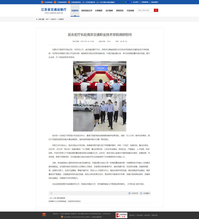 【江苏省交通运输厅官网】吴永宏厅长赴南京交通职业技术学院调研慰问