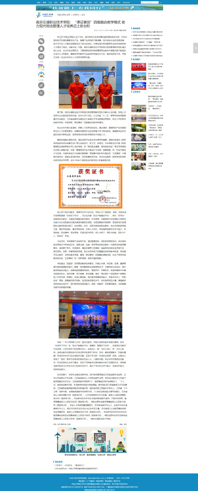 【中国江苏网】南京交通职业技术学院:“课证赛创”四维融合教学模式 助力现代物流管理人才培养迈上新台阶