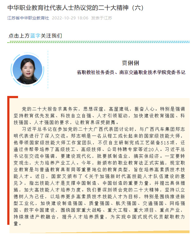 【江苏省中华职业教育社】中华职业教育社代表人士热议党的二十大精神