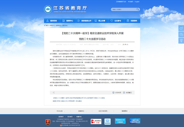 【江苏省教育厅官网】南京交通职业技术学院深入开展党的二十大主题学习活动