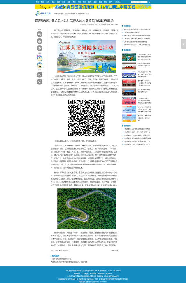 【中国江苏网】奋进新征程 健步走大运!江苏大运河健步走活动即将启动