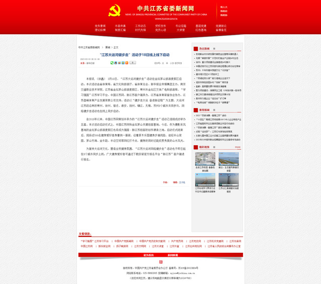 【中共江苏省委新闻网】“江苏大运河健步走”活动于18日线上线下启动