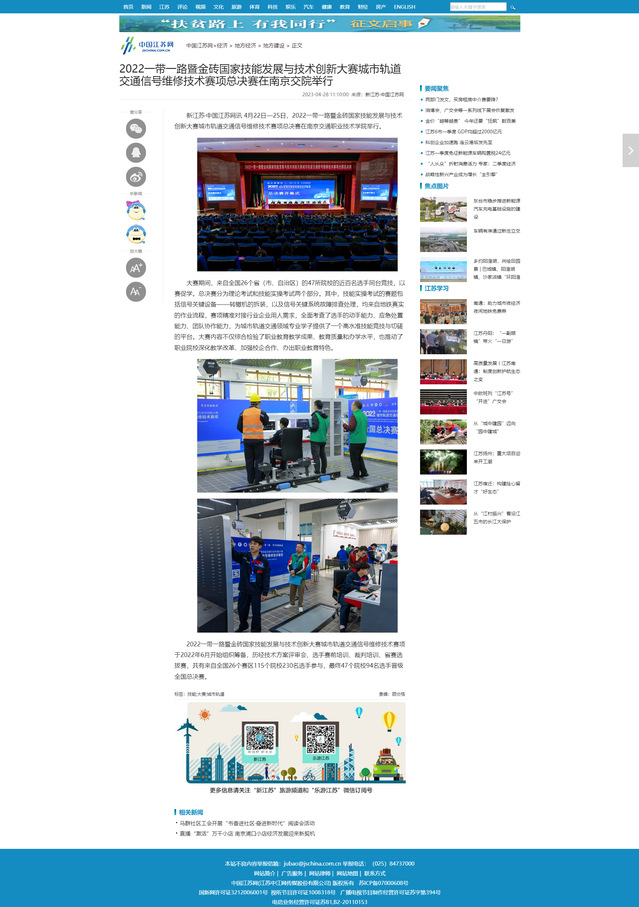 【中国江苏网】2022一带一路暨金砖国家技能发展与技术创新大赛城市轨道交通信号维修技术赛项总决赛在南京交院举行