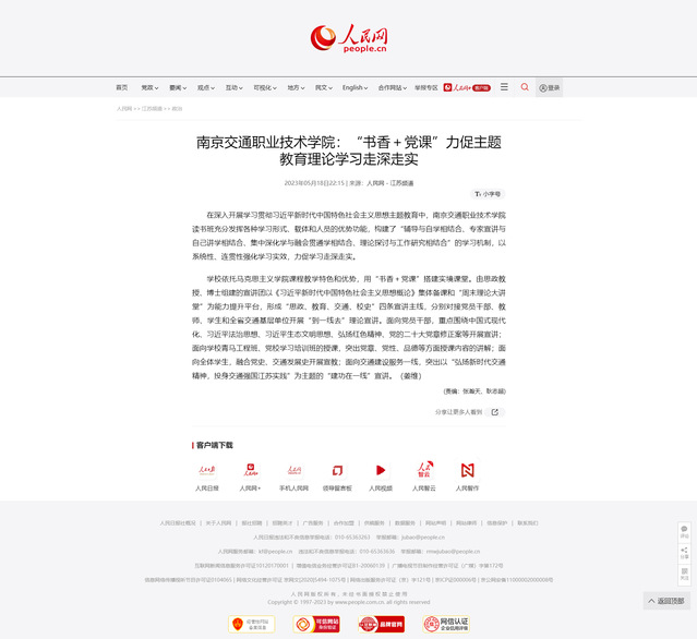 【人民网】南京交通职业技术学院:“书香+党课”力促主题教育理论学习走深走实